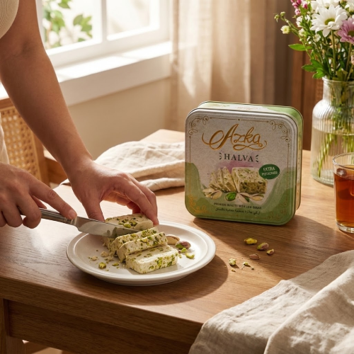 أزكى حلاوة الفستق الإضافية بريميوم (علبة) - حلوة شرق أوسطية لذيذة