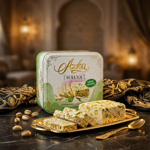 استمتع بأروع حلاوة أزكي مع حلاوة الفستق الممتازة، مقدمة في عبوة معدنية أنيقة. هذه الحلوى الشرق أوسطية الفاخرة غنية بأجود أنواع الفستق، ومصنوعة لمذاق وجودة استثنائيين. لا تحافظ العبوة المعدنية على نضارتها فحسب، بل تجعلها أيضًا هدية مثالية لأي مناسبة. استمتع بمذاق أزكي الفاخر مع حلاوة الفستق الممتازة.